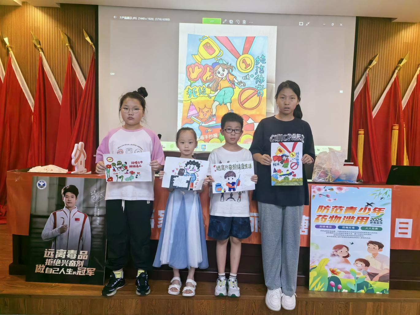活动的最后环节,禁毒社工邀请青少年们将当天所学知识融入绘画创作中。社工与志愿者分工协作,耐心指导。孩子们发挥想象,有的画禁毒吉祥物配“拒绝毒品”标语,有的绘毒品危害警示众人,还有的描绘无毒美好世界。这些画作是学习成果的艺术表达,更是他们自觉成为“小小禁毒宣传员”的坚定宣言。
