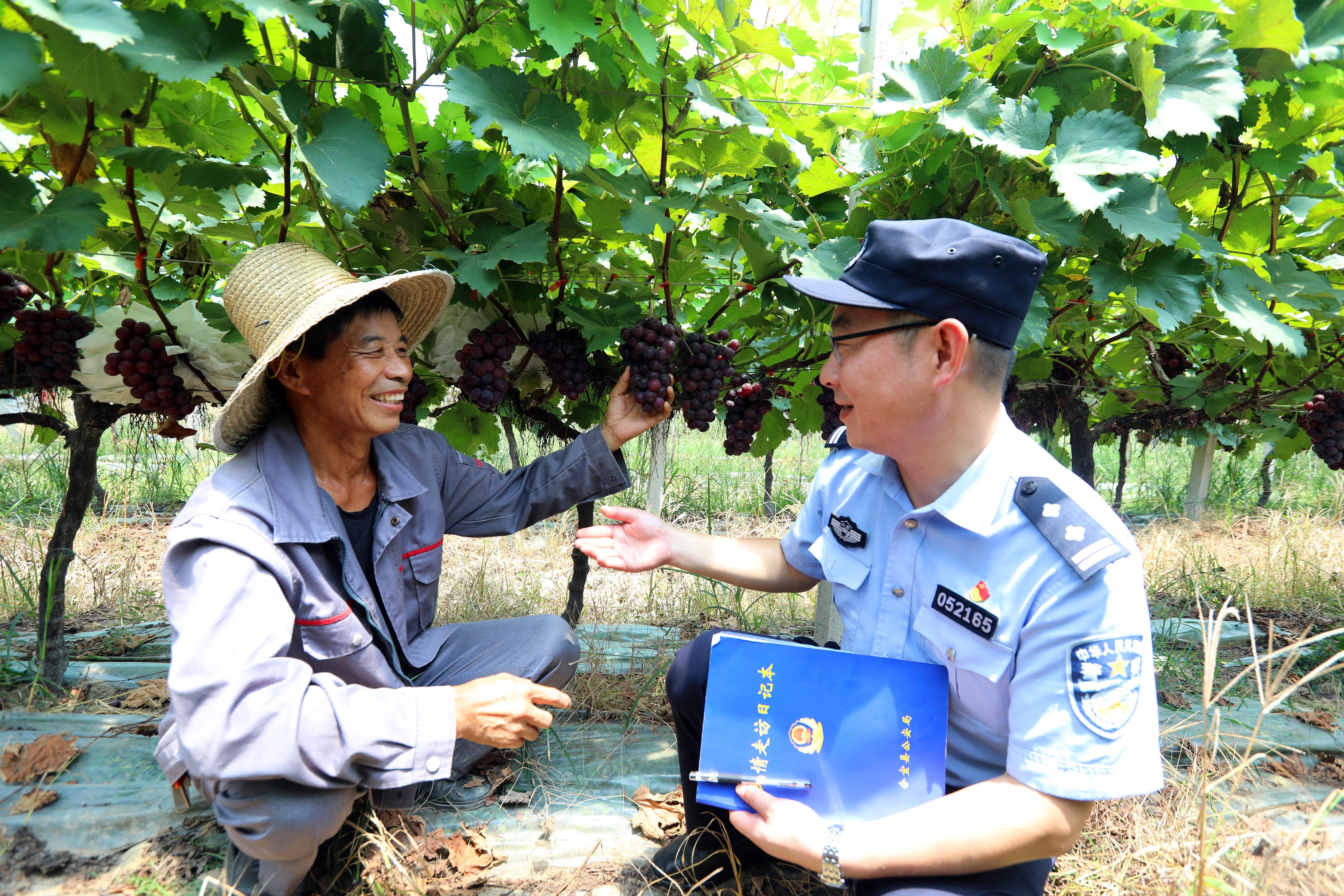 眼下,正值葡萄丰收的季节。连日来,江西省分宜县公安局城东派出所立足辖区农业特色产业,将警务服务延伸至田间地头,在开展治安巡逻、纠纷调解、反诈宣传的同时,帮助群众解决实际问题,全力守护群众甜蜜果实。