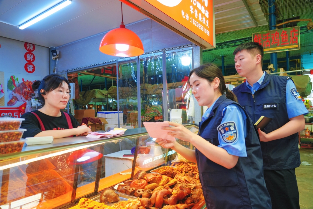 为切实守护人民群众“菜篮子”安全,8月11日,新疆温宿县公安局环食药侦大队组织精干警力,对辖区内重点菜市场卤味熟食、冷冻食品、鲜活水产、粮油米面及新鲜蔬菜等展开了一次全方位食品安全检查。同时,民辅警加强食品安全法律法规宣传,督促商户严格落实主体责任,严把进货查验关,确保所售食品来源可溯、质量可靠。