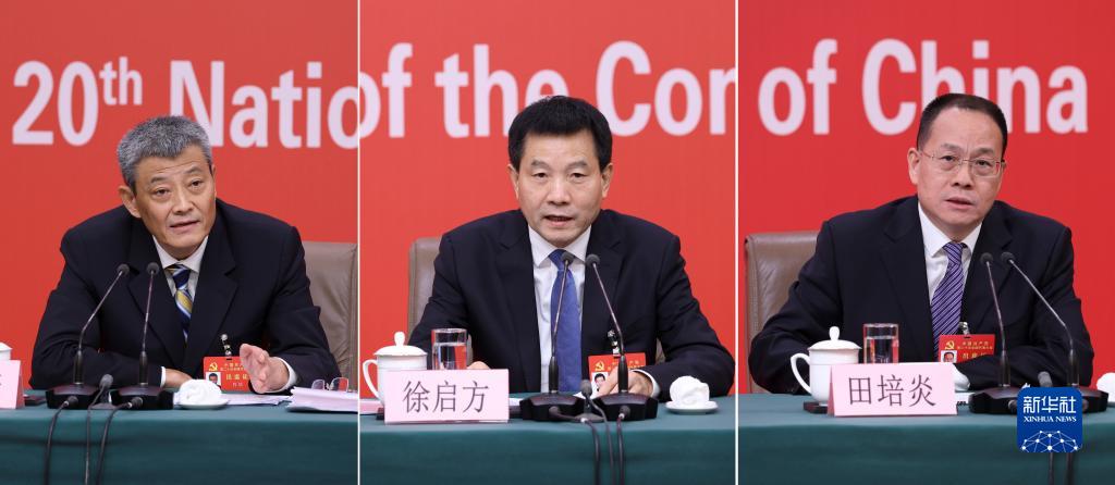 10月17日,中国共产党第二十次全国代表大会新闻中心举行记者招待会,请中央纪委副书记、国家监委副主任肖培,中央组织部副部长徐启方,中央政策研究室副主任田培炎介绍坚定不移全面从严治党,深入推进新时代党的建设新的伟大工程有关情况,并回答记者提问(拼版照片)。