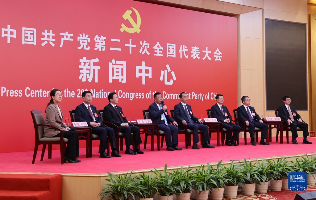 10月19日,中国共产党第二十次全国代表大会新闻中心举行集体采访。山东、河南、湖北、湖南、广东、广西、海南代表团新闻发言人出席,介绍代表团学习讨论二十大报告情况,并回答记者提问。