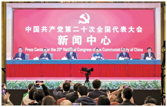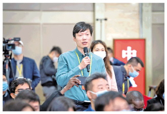 10月19日,党的二十大新闻中心举行记者招待会。图为本报记者提问。 本报记者 王建军 摄