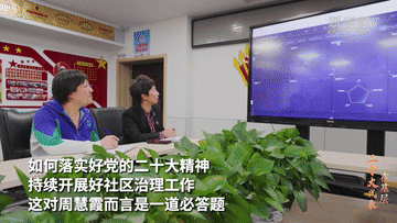 党的二十大代表周慧霞是秦皇岛市海港区天洋新城社区党委书记。大会闭幕回到社区后,她第一时间与同事和社区居民分享自己的参会感受,共同学习贯彻党的二十大精神。