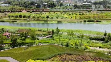 俯瞰一汪碧水,倒映其中,黄的、绿的、红的花草在水中摇曳,鱼儿游弋其间。初冬时节,位于广西南宁市兴宁区三塘镇的那考河湿地公园,几公里长的河道沿岸,花海、湿地、碧水、散步的人,满目和谐。