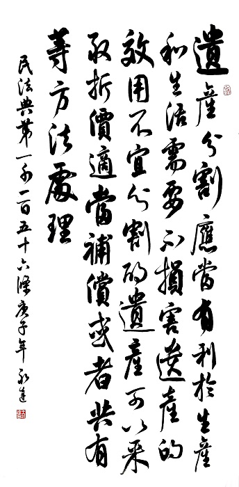 民法典第一千一百五十六条 遗产分割应当有利于生产和生活需要,不损害遗产的效用。