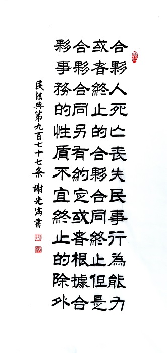 谢光满,原中央国家机关书法家协会会员,司法部书画协会会员,北京市硬笔书法协会会员。