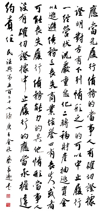 “书·法”活动以书写《中华人民共和国民法典》法条开笔,未来将对准更多的法律。