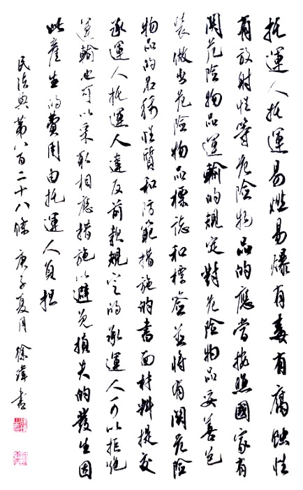 民法典第八百二十八条 托运人托运易燃、易爆、有毒、有腐蚀性、有放射性等危险物品的,应当按照国家有关危险物品运输的规定对危险物品妥善包装,做出危险物品标志和标签,并将有关危险物品的名称、性质和防范措施的书面材料提交承运人。
