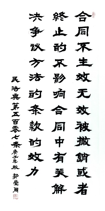 民法典第五百零七条 合同不生效、无效、被撤销或者终止的,不影响合同中有关解决争议方法的条款的效力。