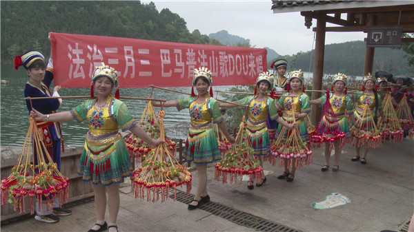 以山歌的形式,进行普法宣传。巴马县司法局供图