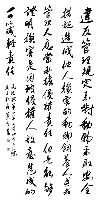 民法典第一千二百四十六条 违反管理规定,未对动物采取安全措施造成他人损害的,动物饲养人或者管理人应当承担侵权责任;但是,能够证明损害是因被侵权人故意造成的,可以减轻责任。
