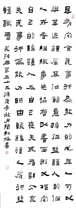 书法作品入展中国“祭侄文稿杯”书法篆刻展优秀奖(最高奖)、中国第四届西部书法篆刻展等。