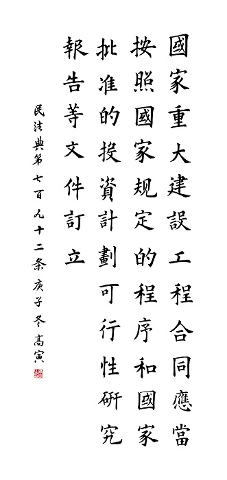 民法典第七百九十二条 国家重大建设工程合同,应当按照国家规定的程序和国家批准的投资计划、可行性研究报告等文件订立。