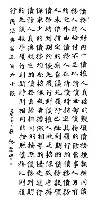 民法典第五百六十条 债务人对同一债权人负担的数项债务种类相同,债务人的给付不足以清偿全部债务的,除当事人另有约定外,由债务人在清偿时指定其履行的债务。