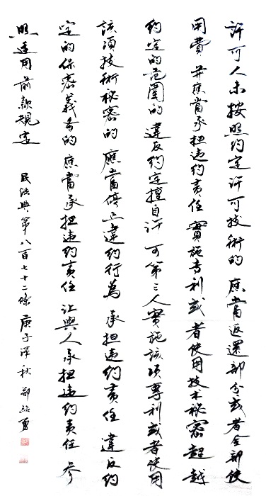 民法典第八百七十二条 许可人未按照约定许可技术的,应当返还部分或者全部使用费,并应当承担违约责任;实施专利或者使用技术秘密超越约定的范围的,违反约定擅自许可第三人实施该项专利或者使用该项技术秘密的,应当停止违约行为,承担违约责任;违反约定的保密义务的,应当承担违约责任。