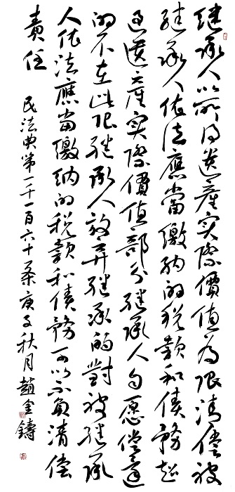 赵金铸,中国书法家协会会员,中国检察官文联书画协会理事,甘肃省定西市渭源县人民检察院党组书记、检察长,甘肃省书法家协会草书委员会委员,定西市书法家协会副主席,定西检察官文联副主席兼书法家协会主席。