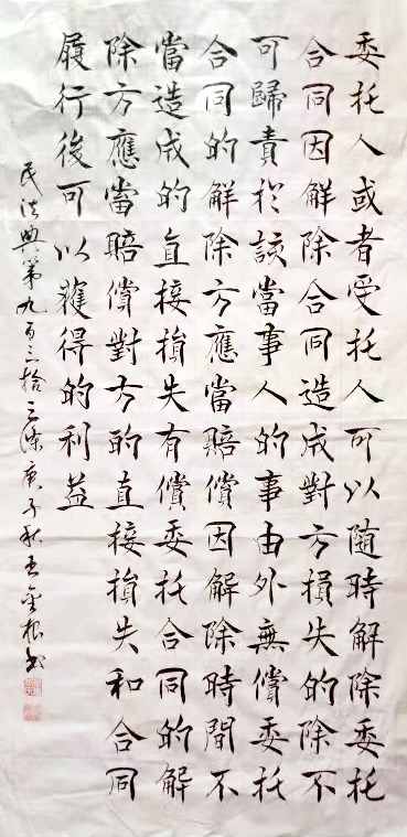 民法典第九百三十三条 委托人或者受托人可以随时解除委托合同。因解除合同造成对方损失的,除不可归责于该当事人的事由外,无偿委托合同的解除方应当赔偿因解除时间不当造成的直接损失,有偿委托合同的解除方应当赔偿对方的直接损失和合同履行后可以获得的利益。