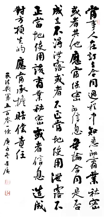 民法典第五百零一条 当事人在订立合同过程中知悉的商业秘密或者其他应当保密的信息,无论合同是否成立,不得泄露或者不正当地使用;泄露、不正当地使用该商业秘密或者信息,造成对方损失的,应当承担赔偿责任。