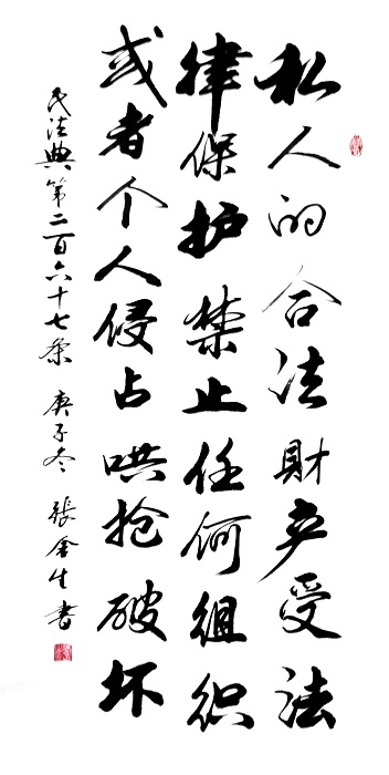 民法典第二百六十七条 私人的合法财产受法律保护,禁止任何组织或者个人侵占、哄抢、破坏。