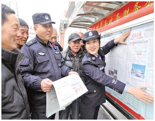 图为12月1日,兴城派出所民警在石农村向群众宣传法律知识。