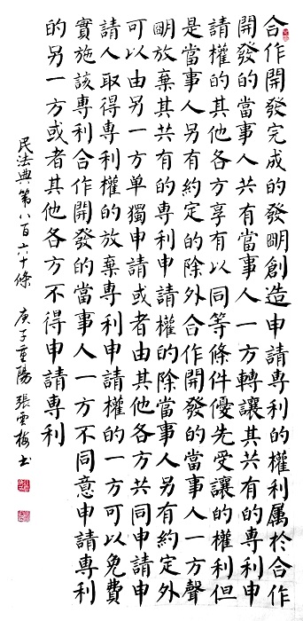 民法典第八百六十条 合作开发完成的发明创造,申请专利的权利属于合作开发的当事人共有;当事人一方转让其共有的专利申请权的,其他各方享有以同等条件优先受让的权利。但是,当事人另有约定的除外。