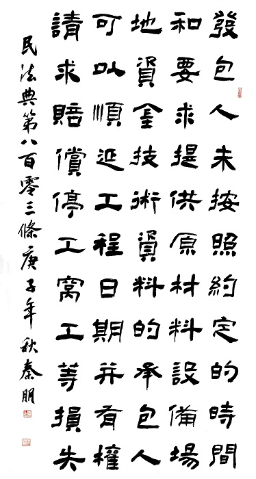 书法作品获“农行杯”首届中国电视书法大赛一等奖等。出版《秦朋隶书<论语>书法作品集》等。