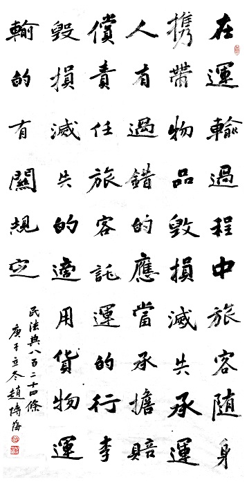 民法典第八百二十四条 在运输过程中旅客随身携带物品毁损、灭失,承运人有过错的,应当承担赔偿责任。