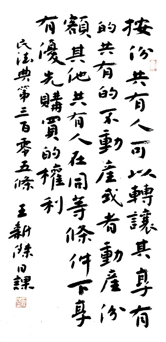 民法典第三百零五条 按份共有人可以转让其享有的共有的不动产或者动产份额。其他共有人在同等条件下享有优先购买的权利。
