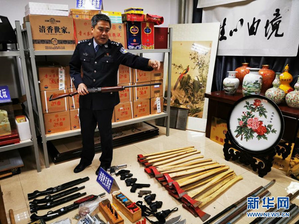 陕西省武功县公安局局长李宁展示以蔡国强等人为首的黑社会性质组织案件中的一把涉案枪支(2020年11月5日摄)。新华社记者 姚友明 摄