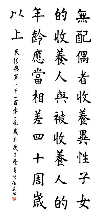 民法典第一千一百零二条 无配偶者收养异性子女的,收养人与被收养人的年龄应当相差四十周岁以上。