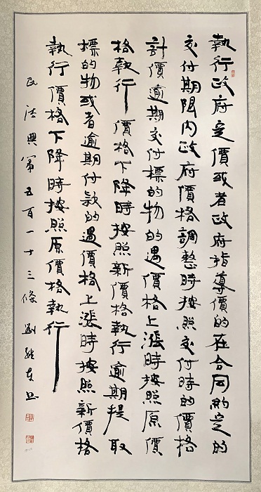 民法典第五百一十三条 执行政府定价或者政府指导价的,在合同约定的交付期限内政府价格调整时,按照交付时的价格计价。逾期交付标的物的,遇价格上涨时,按照原价格执行;价格下降时,按照新价格执行。逾期提取标的物或者逾期付款的,遇价格上涨时,按照新价格执行;价格下降时,按照原价格执行。
