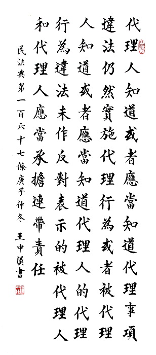 民法典第一百六十七条 代理人知道或者应当知道代理事项违法仍然实施代理行为,或者被代理人知道或者应当知道代理人的代理行为违法未作反对表示的,被代理人和代理人应当承担连带责任。