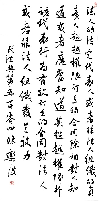 民法典第五百零四条 法人的法定代表人或者非法人组织的负责人超越权限订立的合同,除相对人知道或者应当知道其超越权限外,该代表行为有效,订立的合同对法人或者非法人组织发生效力。