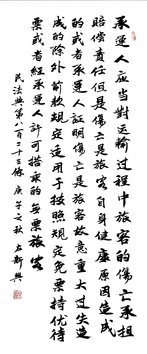 民法典第八百二十三条 承运人应当对运输过程中旅客的伤亡承担赔偿责任;但是,伤亡是旅客自身健康原因造成的或者承运人证明伤亡是旅客故意、重大过失造成的除外。