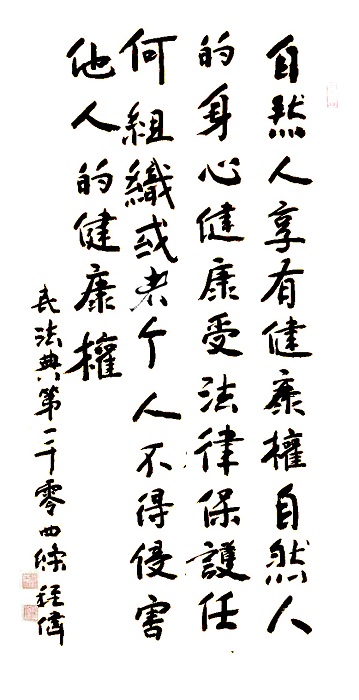 民法典第一千零四条 自然人享有健康权。自然人的身心健康受法律保护。任何组织或者个人不得侵害他人的健康权。