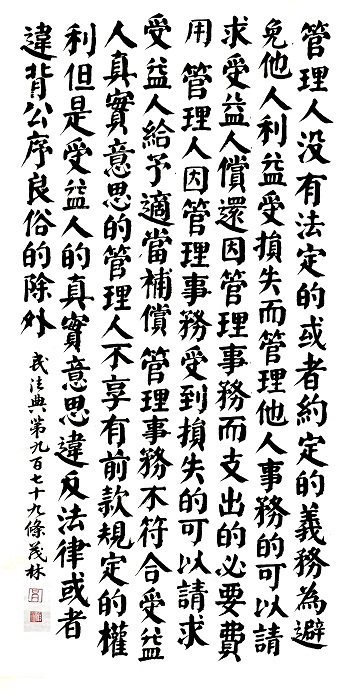 民法典第九百七十九条 管理人没有法定的或者约定的义务,为避免他人利益受损失而管理他人事务的,可以请求受益人偿还因管理事务而支出的必要费用;管理人因管理事务受到损失的,可以请求受益人给予适当补偿。