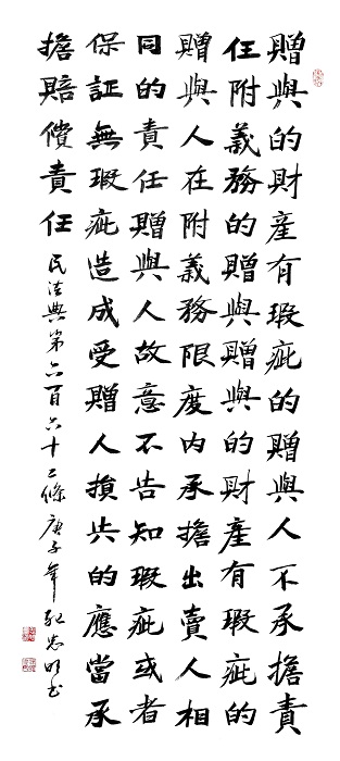 民法典第六百六十二条 赠与的财产有瑕疵的,赠与人不承担责任。附义务的赠与,赠与的财产有瑕疵的,赠与人在附义务的限度内承担与出卖人相同的责任。