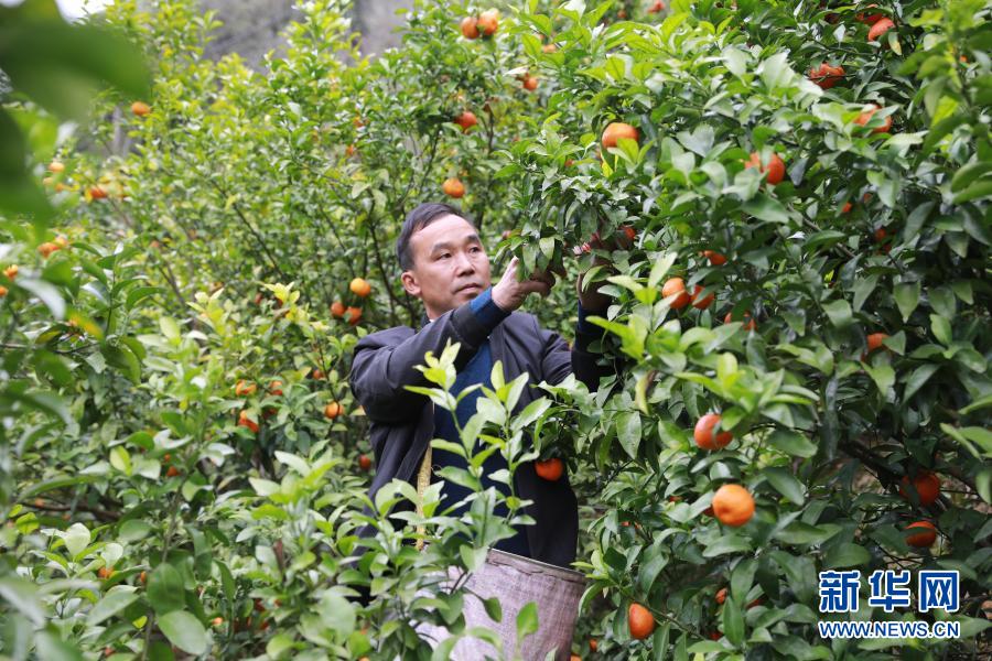 广西乐业县新化镇百坭村村民班统茂在果园里忙碌(2月18日摄)。新华社记者 梁舜 摄