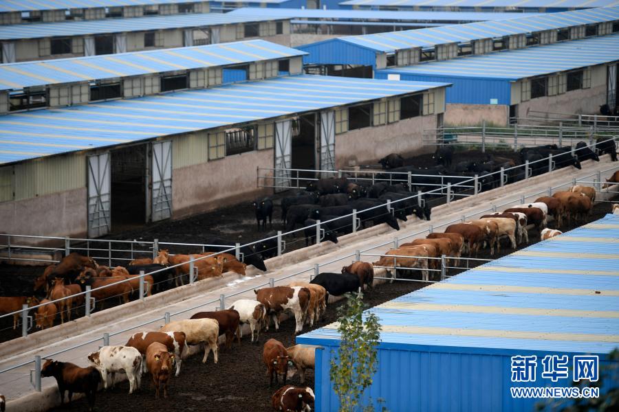 这是2018年8月17日拍摄的宁夏银川市永宁县闽宁镇原隆村肉牛托管养殖基地。新华社记者 王鹏 摄