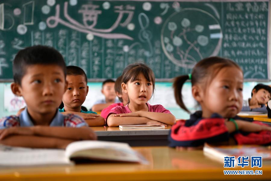 在宁夏银川市永宁县闽宁镇原隆村原隆小学,一年级的孩子们在上课(2019年9月3日摄)。新华社记者 王鹏 摄