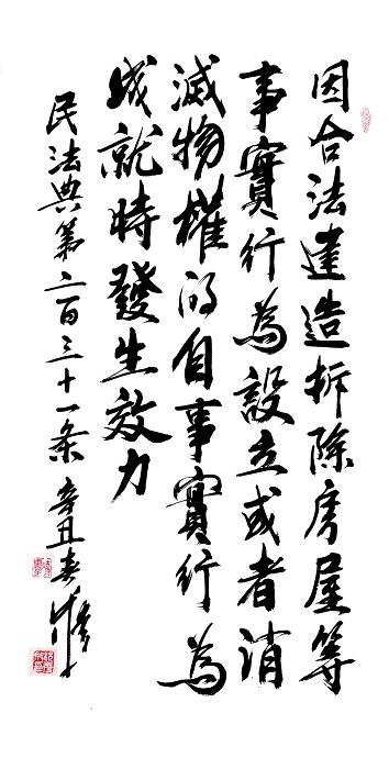 民法典第二百三十一条 因合法建造、拆除房屋等事实行为设立或者消灭物权的,自事实行为成就时发生效力。