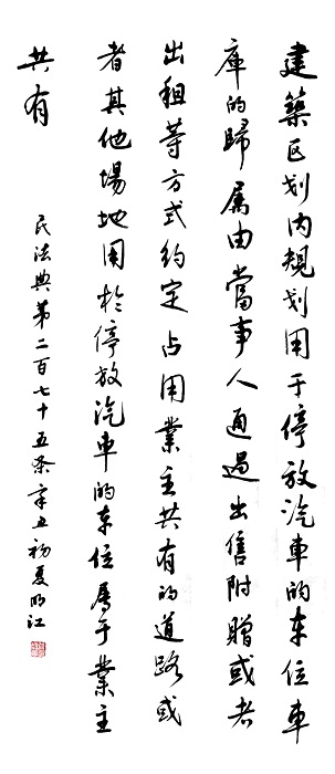 民法典第二百七十五条 建筑区划内,规划用于停放汽车的车位、车库的归属,由当事人通过出售、附赠或者出租等方式约定。