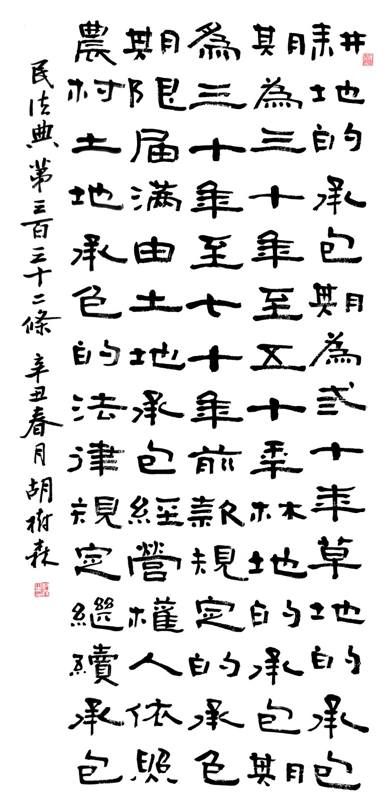 民法典第三百三十二条 耕地的承包期为三十年。草地的承包期为三十年至五十年。林地的承包期为三十年至七十年。