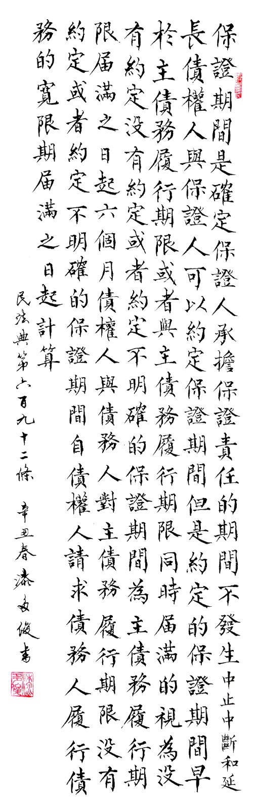 民法典第六百九十二条 保证期间是确定保证人承担保证责任的期间,不发生中止、中断和延长。