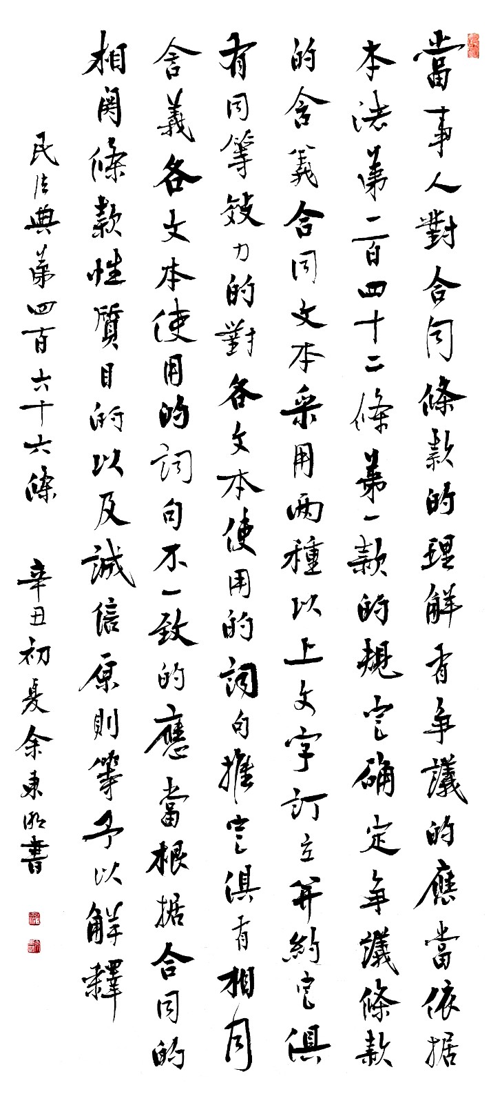民法典第四百六十六条 当事人对合同条款的理解有争议的,应当依据本法第一百四十二条第一款的规定,确定争议条款的含义。