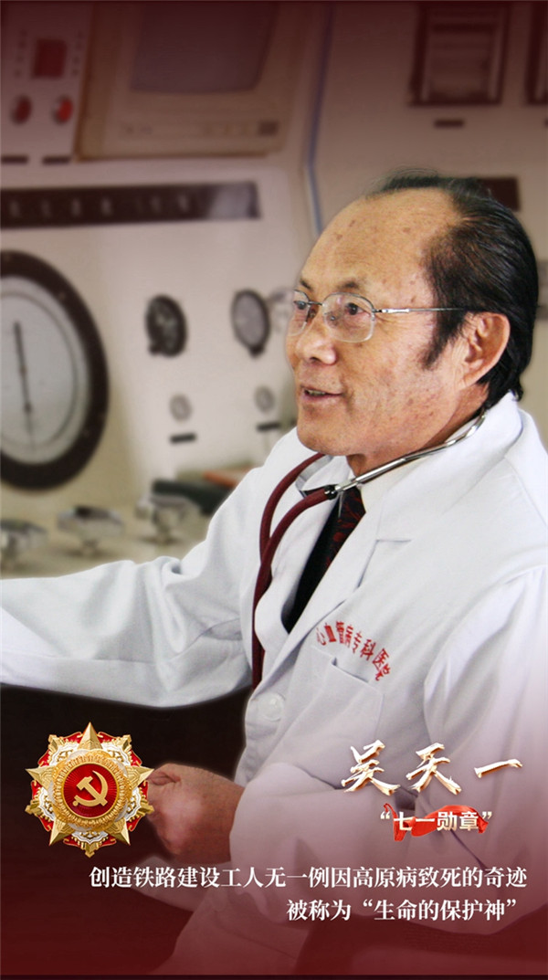 他是中国工程院院士吴天一,高原医学事业的开拓者、低氧生理学与高原医学专家。今年6月29日,他站上人民大会堂金色大厅领奖台,戴上了代表党内最高荣誉的“七一勋章”。