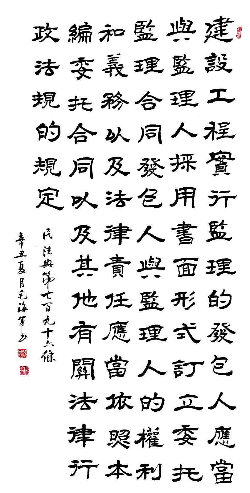 民法典第七百九十六条 建设工程实行监理的,发包人应当与监理人采用书面形式订立委托监理合同。发包人与监理人的权利和义务以及法律责任,应当依照本编委托合同以及其他有关法律、行政法规的规定。