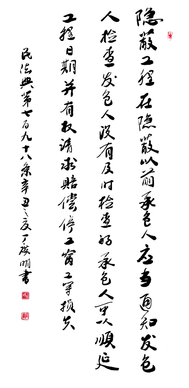 民法典第七百九十八条 隐蔽工程在隐蔽以前,承包人应当通知发包人检查。发包人没有及时检查的,承包人可以顺延工程日期,并有权请求赔偿停工、窝工等损失。