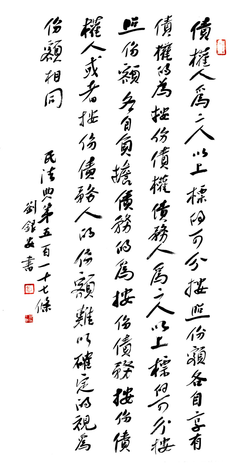 民法典第五百一十七条 债权人为二人以上,标的可分,按照份额各自享有债权的,为按份债权;债务人为二人以上,标的可分,按照份额各自负担债务的,为按份债务。