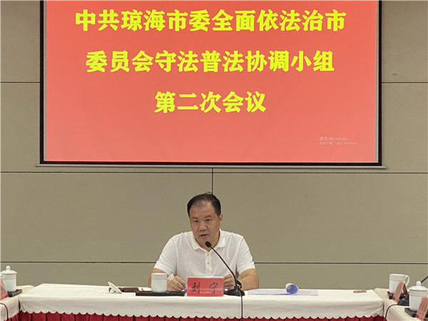 9月1日上午,中共海南省琼海市委全面依法治市委员会守法普法协调小组第二次会议召开。琼海市委常委、宣传部部长、守法普法协调小组组长刘宁出席会议,琼海市司法局党组书记、守法普法协调小组副组长程祥主持会议,守法普法协调小组成员单位分管领导参加会议。